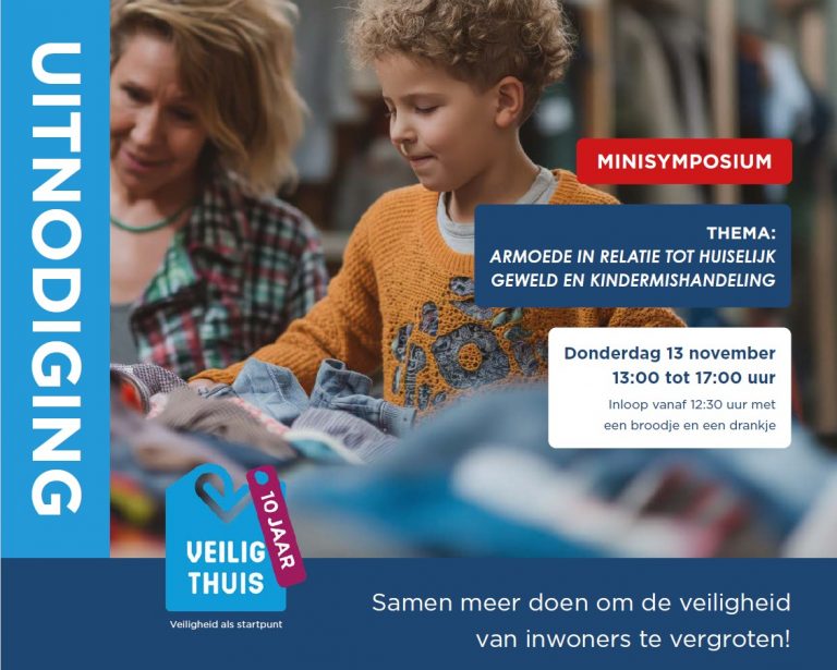 Veilig Thuis nodigt je van harte uit voor het minisymposium ‘Armoede in relatie tot huiselijk geweld en kindermishandeling’ op donderdag 13 november 2025.